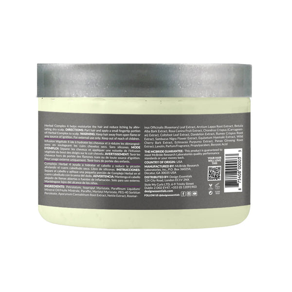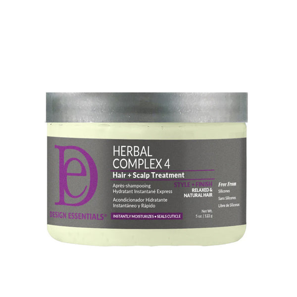 Offrez un peu d'amour à votre cuir chevelu avec notre traitement pour cheveux et cuir chevelu Design Essentials® Herbal Complex 4. Il s'agit d'un composé léger de quatre herbes essentielles : chanvre noir indien, ginseng, prêle et romarin.