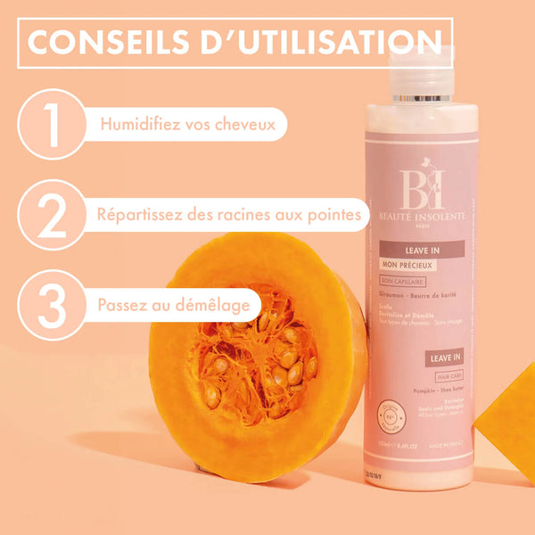 Découvrez le soin Leave in enrichi en Beurre de Karité et Giraumon pour sceller la cuticule et hydrater en profondeur la fibre capillaire.
